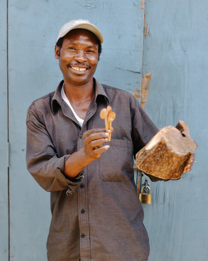 Kibwezi, Kenya has long been known for its skilled carvers who transform fallen wood into functional works of art. Using only basic hand tools, this skill is passed from father to son and requires years of patient practice to master. Hand-carving was long considered a highly respected profession but has seen a slow decline in recent decades as younger generations move out of rural villages in search of urban jobs. Collins, however, was determined to follow in his family’s long tradition of woodwork. Since 2009 his team has grown to 80 artisans and has breathed renewed life into a dwindling craft. With products now exported globally, their skill and dedication has begun to attract a new generation of hand-carvers ensuring the future of this craft.